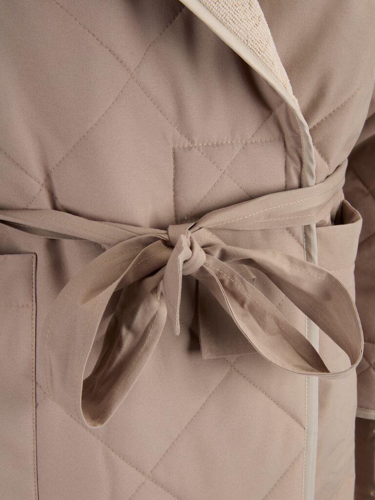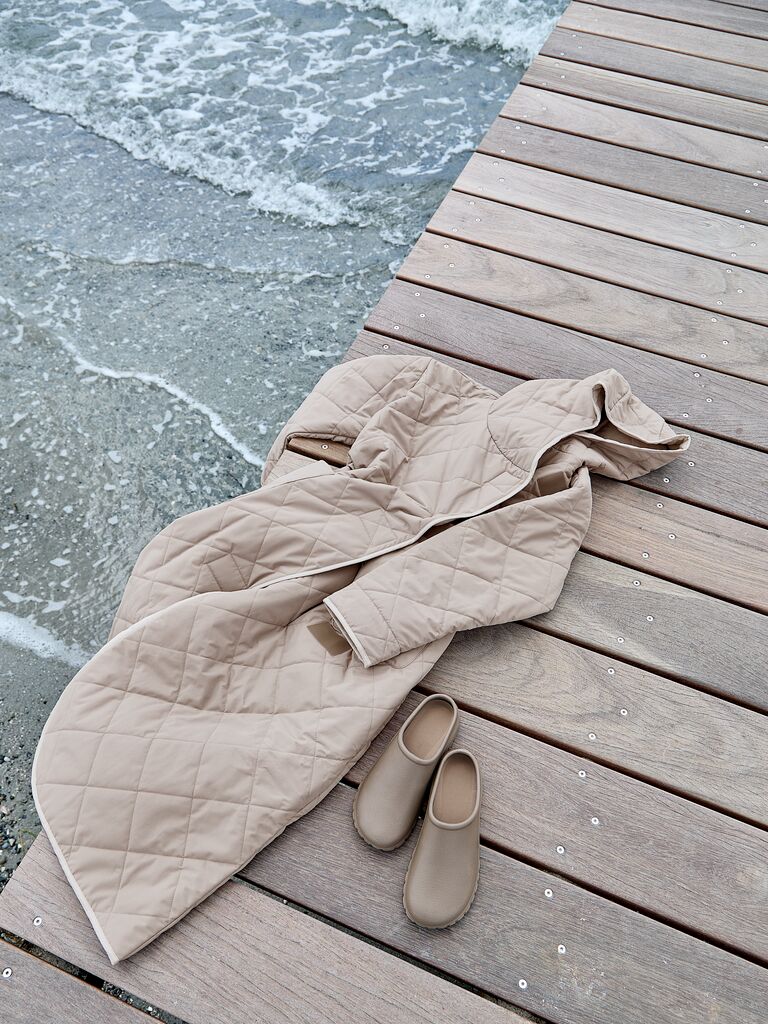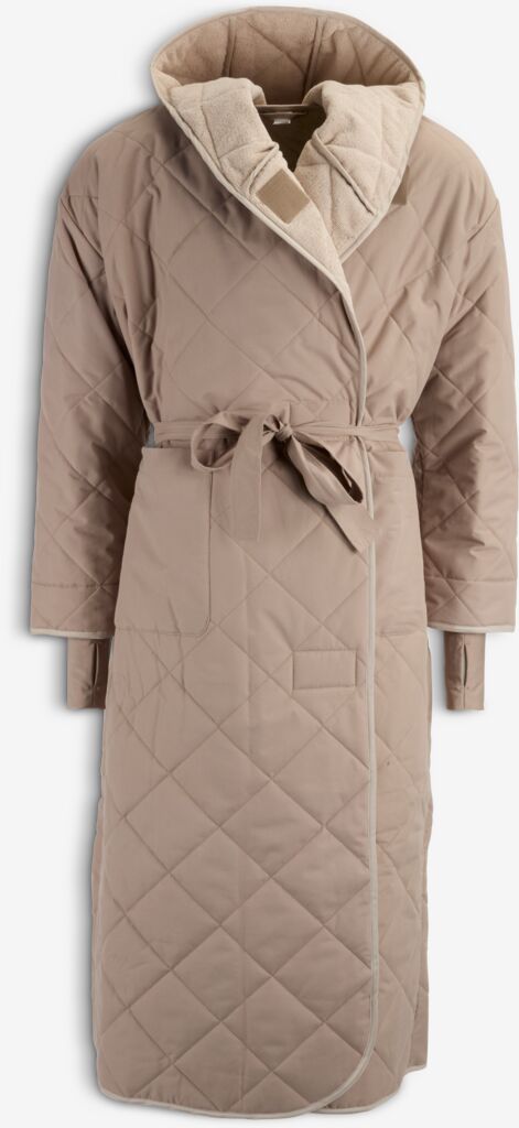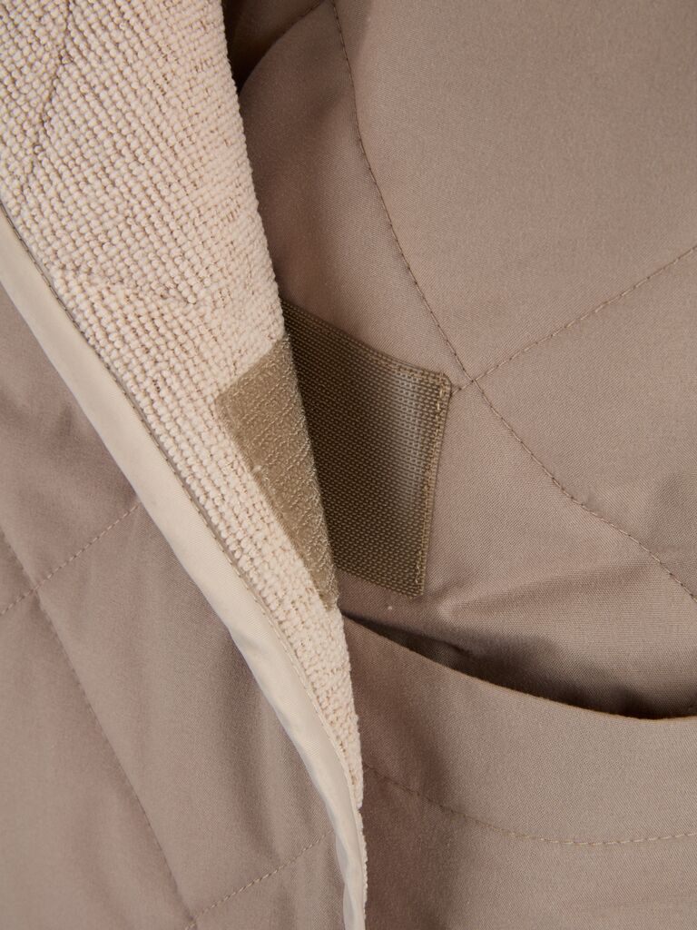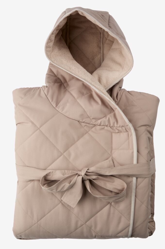 Vinterbadrock i 100% polyester. Yttertyget är vindtätt och muddarna med tumhål håller ärmarna på plats även i blåsigt väder. Varmt, snabbtorkande frottéfoder som håller dig torr och skön. Både inner- och ytterfickor, tillräckligt stora för nycklar och mobiltelefon. Den stora huvan håller nacken och öronen varma och kardborreknäppningen ser till att badrocken håller sig på plats. Finns i S/M och L/XL