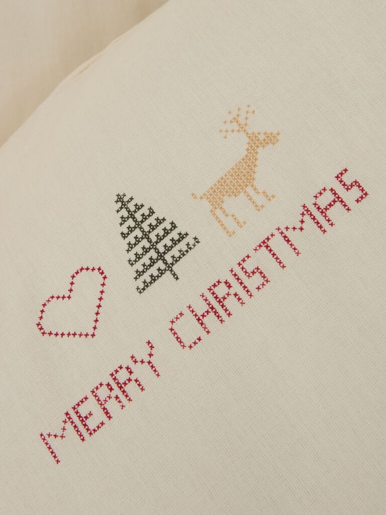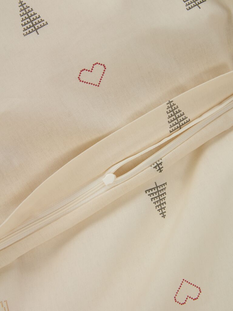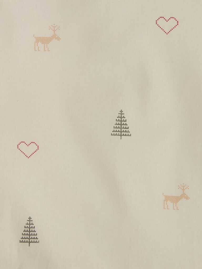 Påslakanset i 100% bomull med ett diskret julmönster av granar, renar och hjärtan på en neutral bakgrund. Designen skapar en lugn, skandinavisk julstämning i ditt sovrum. Setet innehåller ett påslakan och ett örngott, båda med praktisk blixtlåsstängning. 150x210 cm