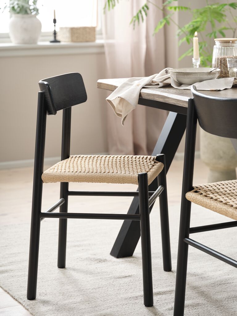 | Material | Topp: Massiv ek, Ben: Träfanér består av tunna skikt av massivt trä limmat på en spånskiva eller en MDF-skiva. Det ger ett autentisk intryck av massivt, naturligt trä. |
