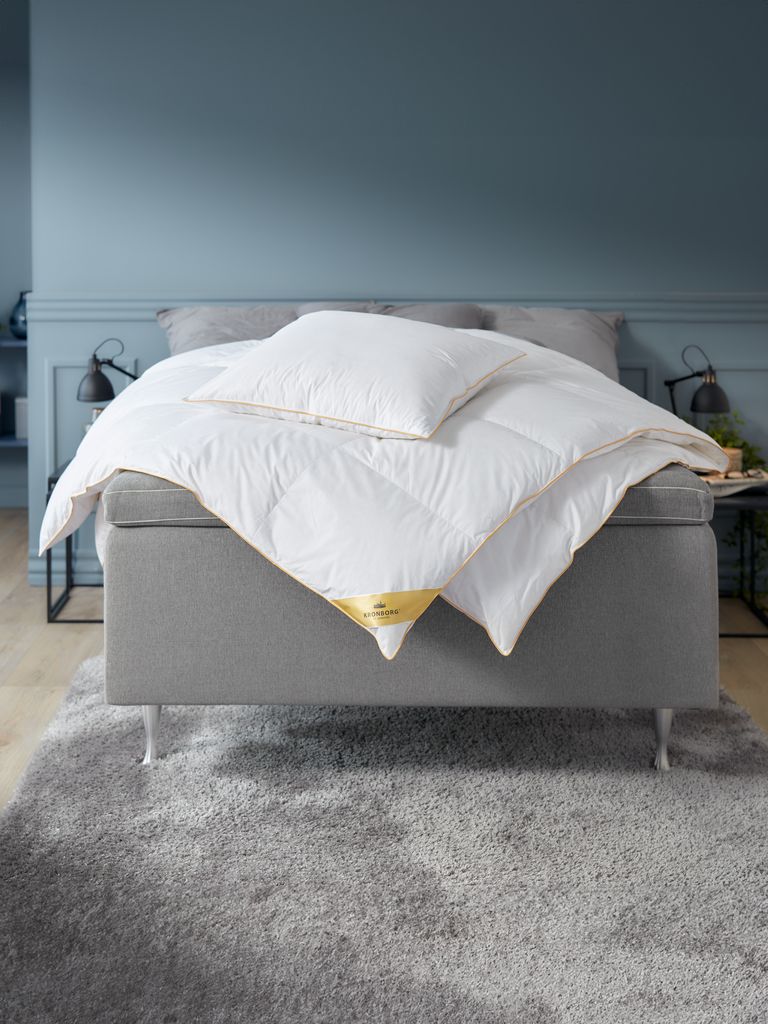 | Fyllning | Yttre kammare: 70% vita europeiska anddun/30% vita europeiska andfjädrar. Yttre kammare - vikt: 200 g. Inre kammare: 100% vita europeiska andfjädrar. Inre kammare - vikt: 850 g |