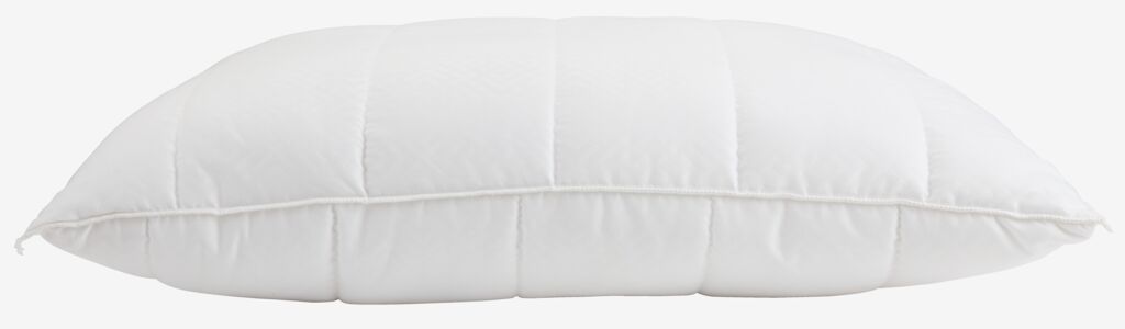 Fiberkudde 50x60 cm med lätt, luftig fyllning av silikoniserad, spiralformad hålfiber (100% återvunnen), 470 g. Överdrag i 65% polyester/35% bomull. Tvätt 60°C.