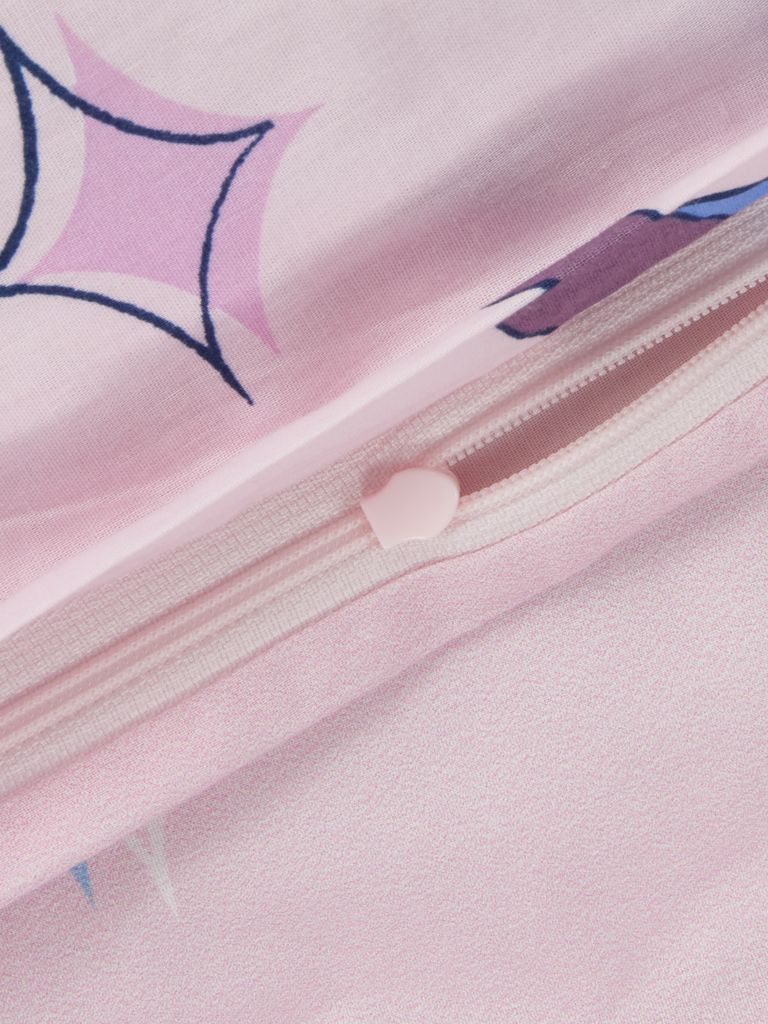 Kul med olika tryck på fram och baksida, barnet blev väldigt nöjd. Och toppen med dragkedja så täcket inte börjar trilla ur. Allt enligt beskrivning och vad vi förväntat oss.