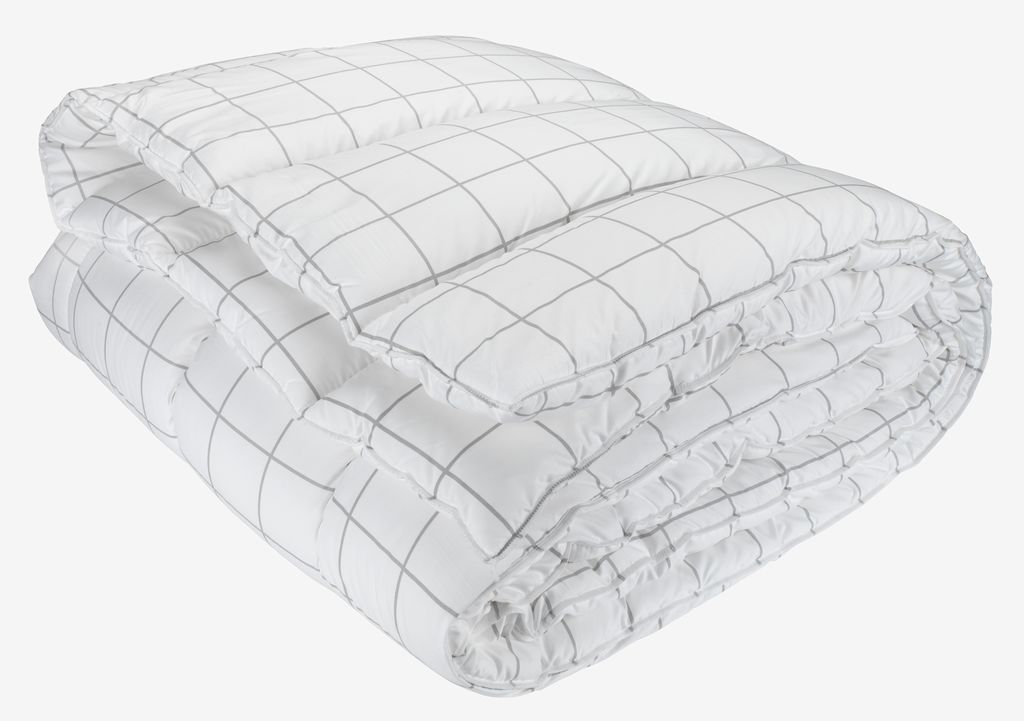 Fibertäcke 150x200 cm med luftig, isolerande fyllning av silikoniserad, spiralformad hålfiber, 1000 g. Mjukt överdrag i 100% polyestermikrofiber. Tvätt 60°C.