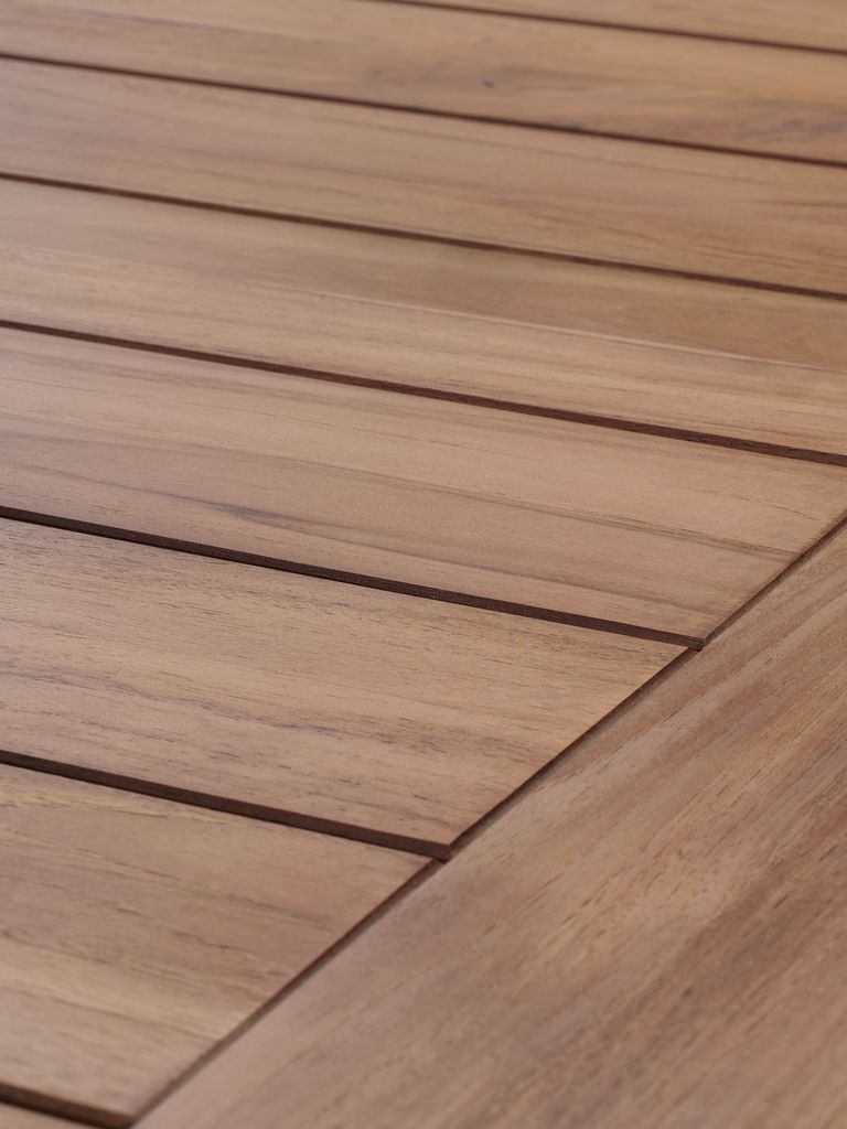 Trädgårdsbord i massiv FSC® teak. Teak är en elegant och slitstark typ av hårdträ med hög halt av naturlig olja, som förhindrar att fukt sugs upp i träet. Med tiden utvecklar teak en silvergrå patina. B100 x L210 x H76 cm
