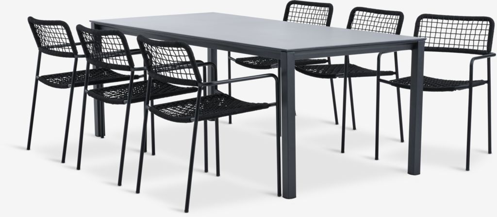 LANGET + LABINGLANGET L207 bord svart + 4 LABING stol svart