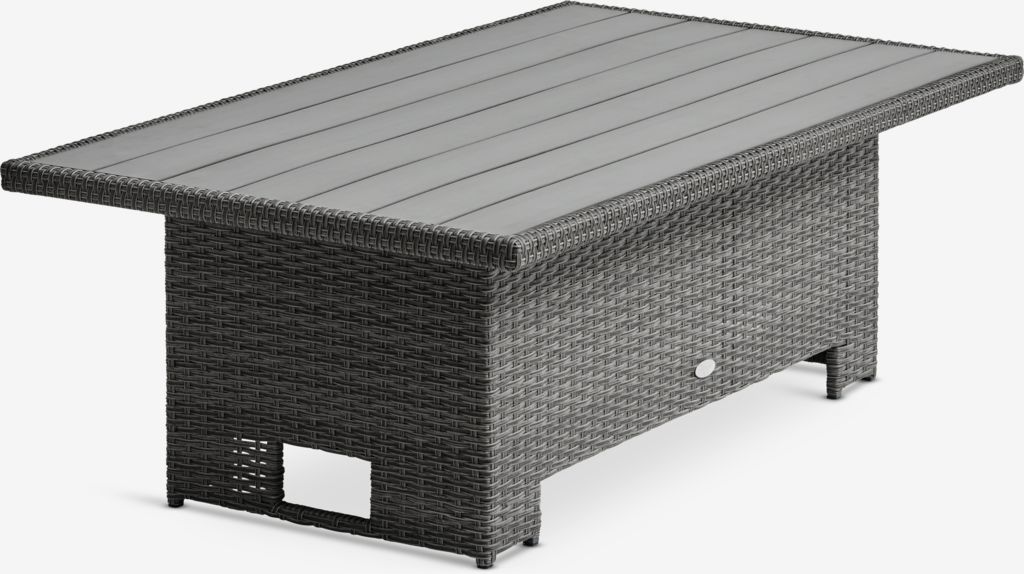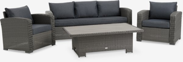 Snygg loungegrupp med praktiskt höj/sänkbart bord så man lätt kan ha det som matgrupp. Lätt att montera