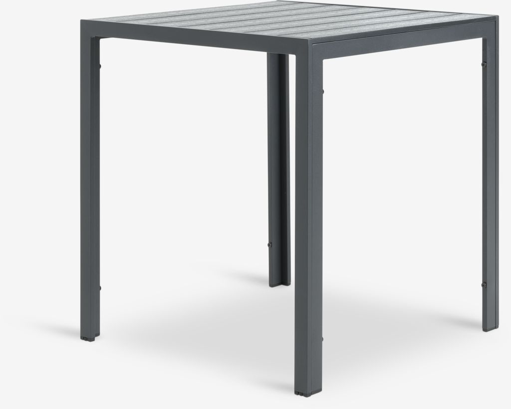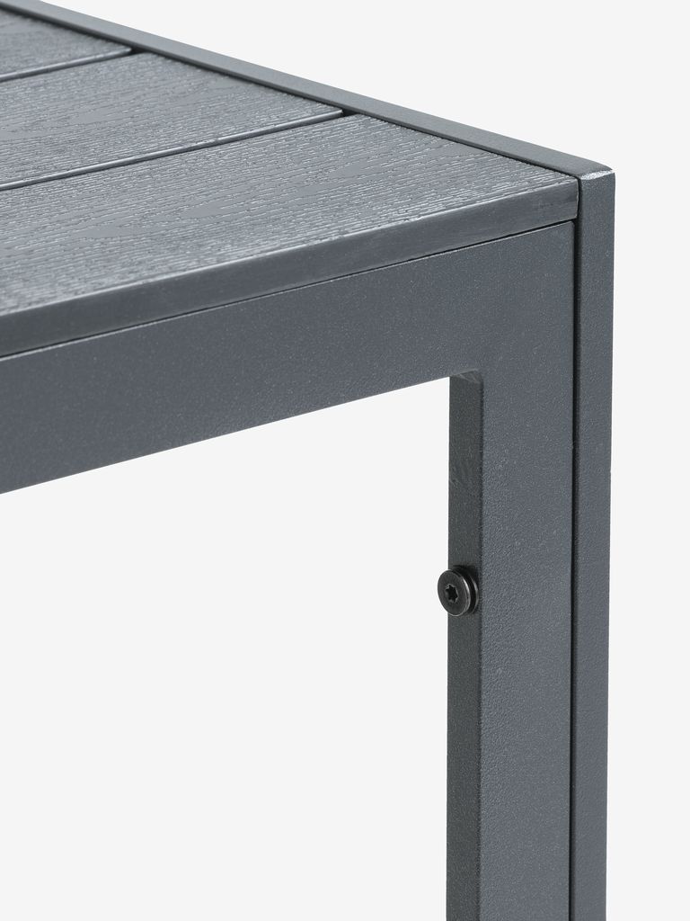 | Material | Ställning: Aluminium, Bordsskiva: Konstträ är ett underhållsfritt, syntetiskt material med naturlig trälook. Det är tillverkat av plast, såsom polystyren, som ger ett slitstarkt och väderbeständigt material. Konstträ är UV-skyddat, vilket säkerställer en färgbeständig yta. |