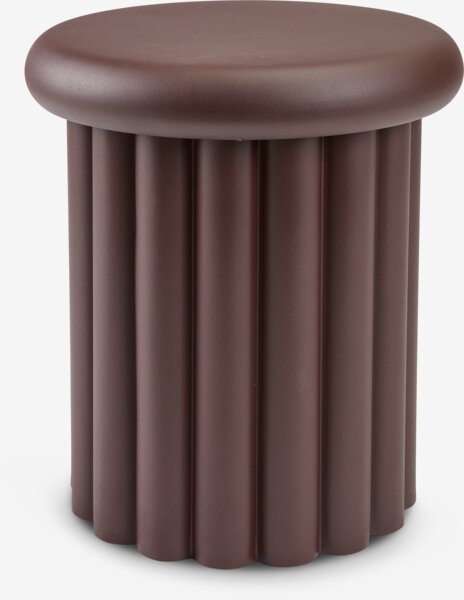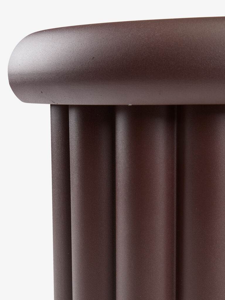 Piedestal med en karaktäristisk räfflad design i auberginefärg. Den är tillverkad av pulverlackerat, galvaniserat stål och passar för trädgården, uteplatsen eller balkongen. Använd den som ett modernt sidobord eller för att ställa en växtkruka högre upp. Ø39 x H45 cm
