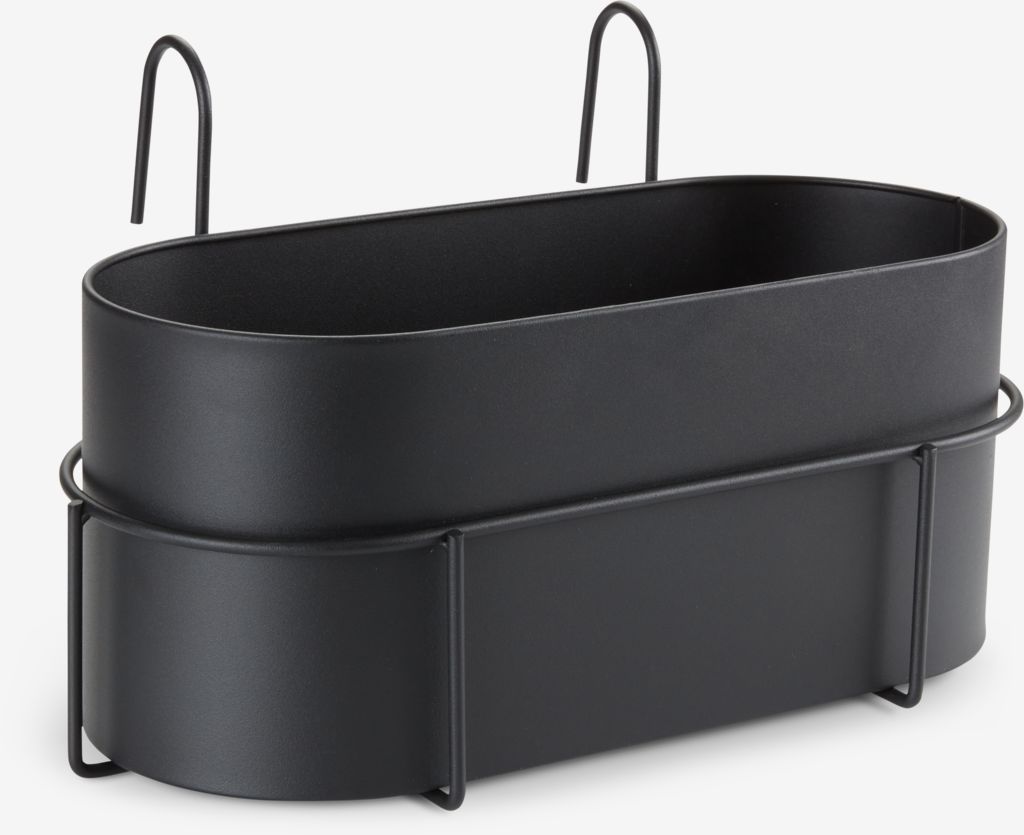 Svart balkonglåda i pulverlackerat stål. Den moderna och enkla designen passar alla inredningar och får dina växter och blommor att framträda ännu mer färgstarka. Balkonglådan har ett dräneringshål, vilket säkerställer att överflödigt vatten kan rinna bort. B23 x L37 x H22 cm