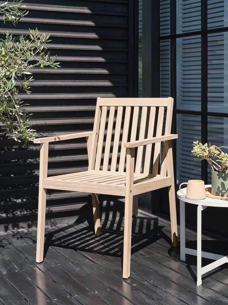 | Material | Ram: Massiv akacia, Rygg: Massiv akacia, Sits: Massiv akacia, Armstöd: Massiv akacia, Ben: Massiv akacia |