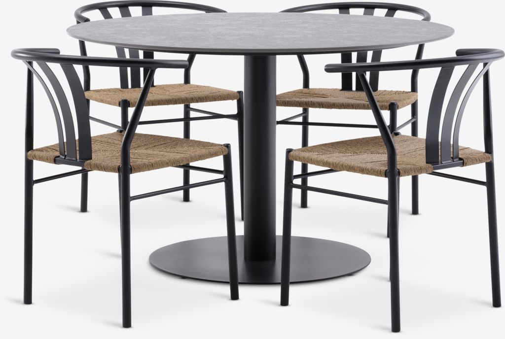 VAMDRUP + TAGMARKVAMDRUP Ø120 bord grå + 4 TAGMARK stol svart
